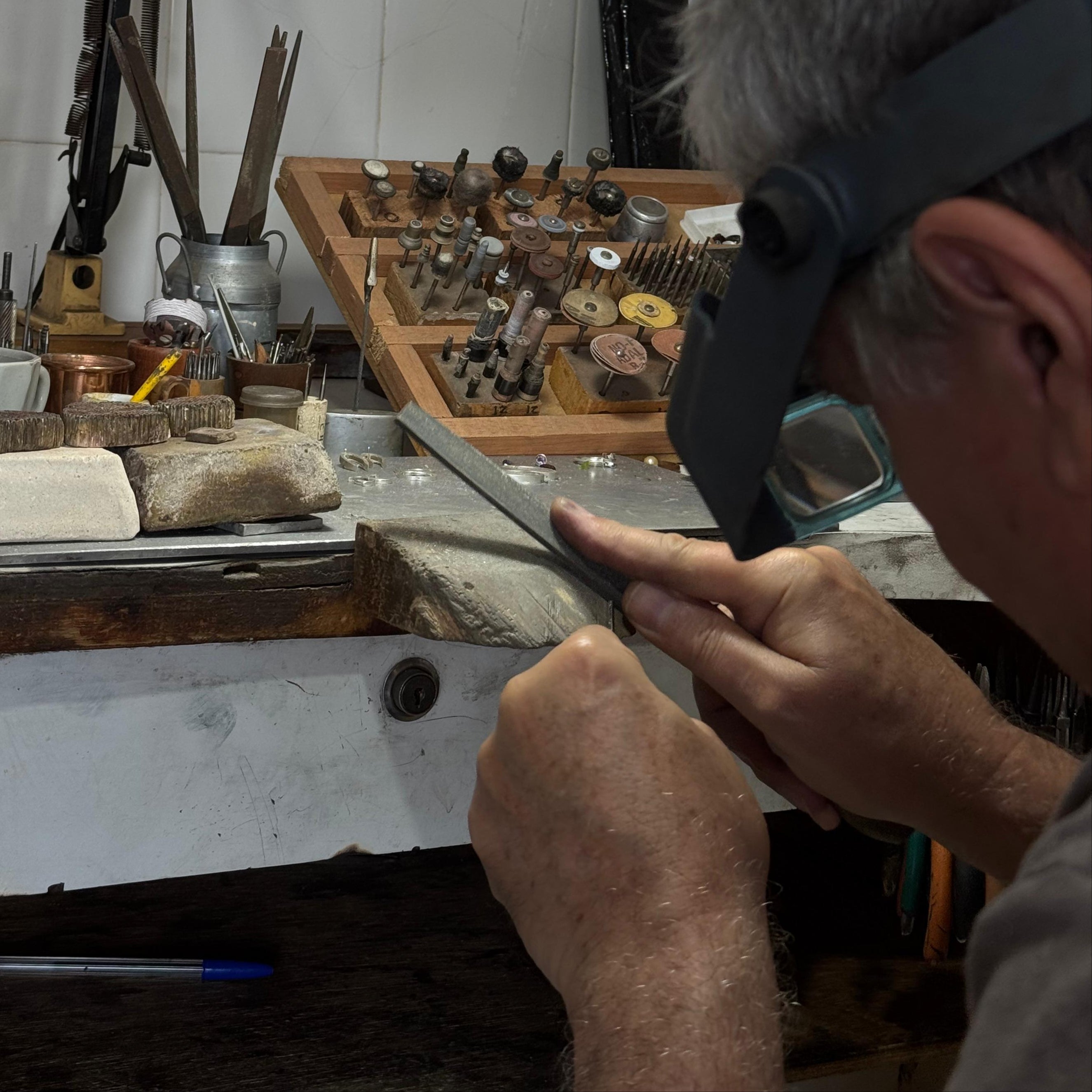 Cada peça é feita a mão e carrega um legado de 40 anos de experiência, transformando o tempo em matéria preciosa.